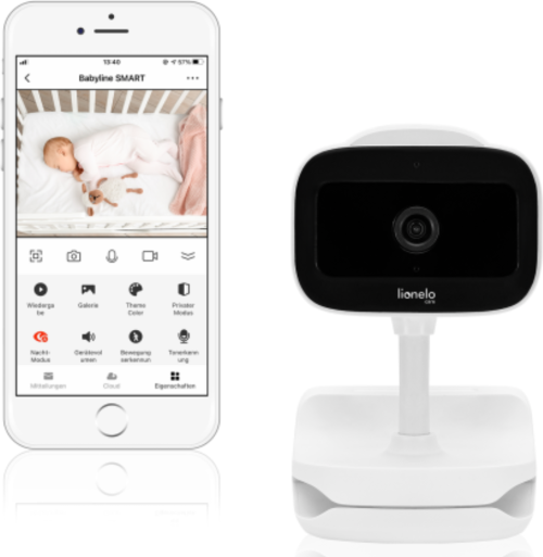 kompatibilní s aplikací lionelo Smart - umožňuje nahlížet a ovládat kameru z telefonu (lze fotografovat a pořizovat videa v aplikaci nebo na SD kartu v zařízení), vestavěná baterie, která zajišťuje bezdrátový provoz až po dobu 5 hodin, vestavěné osvětlení umožňuje chůvičku používat jako noční světlo, systém upozornění informující o detekci zvuku, pohybu, překročení nastavené teploty nebo úrovně vlhkosti v místnosti, praktický klip umožňuje kameru upevnit na různá místa, což výrazně usnadňuje každodenní používání, obousměrná komunikace - vy dítě vidíte a slyšíte, ale můžete také s dítětem mluvit prostřednictvím kamery, funkce otáčení o 180° zajistí pohled na celou místnost, čtyřnásobný digitální zoom, noční režim zajišťuje viditelnost až do vzdálenosti 8 m, neomezený dosah, nastavení hlasitosti 10 úrovní, ukolébavky a zvuky přírody, rozlišení kamery: 2304 x 1296 px, zorný úhel záběru kamery: až 100°, napájení: 5V 1A.