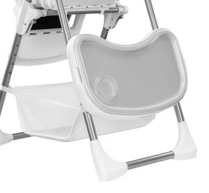 odolný ocelový rám 6 úrovní nastavení výšky 3 úrovně nastavení opěradla protiskluzové podložky na předních nohách zabraňují převrácení židle plastová kolečka na zadních nohách židle 5ti bodové bezpečnostní pásy odnímatelná opěrka nohou dvoudílný nastavitelný podnos se speciálním místem pro šálek (odnímatelnou horní část lze mýt v myčce na nádobí) ergonomické sedadlo pohodlné měkké čalounění z eko-kůže lze snadno čistit velký koš na příslušenství nebo hračky snadné a rychlé skládání, vhodná na cesty