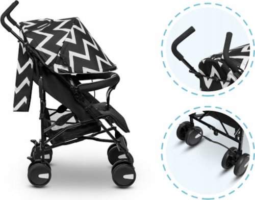 Stříška XXL se stříškou a okénkem: Zvětšená stříška lépe chrání dítě proti atmosférickým podmínkám a poskytuje příjemný stín. Přes okénko, které umožňuje nastavit proudění vzduchu, mohou rodiče pozorovat dítě. Lehký a kompaktní: Díky nízké hmotnosti a kompaktním rozměrům může být kočárek v rozloženém stavu vždy po ruce, když je potřeba. Bezúdržbová, nepropíchnutelná kola: Při cestě na dovolenou nebo při každodenních procházkách nemusíte mít obavy z foukání kol nebo jejich případného propíchnutí! Protože kola z EVA pěny nelze propíchnout. Odpružení a aretace otáčení: Přední kola jsou vybavena odpružením a aretací otáčení, která usnadňuje klidné houpání v přímém směru. Jednoduchý skládací systém: Stačí chvilka pro složení nebo rozložení kočárku. Obsluha je velmi jednoduchá a nezabere mnoho času. Pohodlné držadlo pro přenášení: Po bleskovém složení můžete lehký kočárek snadno přenést pomocí ergonomického držadla. Nastavení opěradla a opěrky nohou: 4 stupně nastavení opěradla a 2 úrovně nastavení opěrky nohou umožňují přizpůsobit kočárek aktuálním potřebám a výšce dítěte. Prostorný koš: Do snadno přístupného, otevřeného koše se vejde nákup nebo nejpotřebnější doplňky (včetně moskytiéry v sadě)