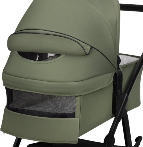 lze využít při první cestě z porodnice, 2-stupňové nastavení výšky pásů, 3-bodové bezpečnostní pásy, bederní opěrka a opěrka hlavy chrání novorozence, nastavitelná ergonomická rukojeť, lehká konstrukce, odnímatelné polstrování Dri-Seat, lze připevnit na rám kočárku pomocí univerzálních adaptérů (jsou součástí sady).