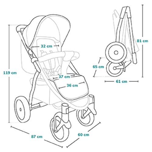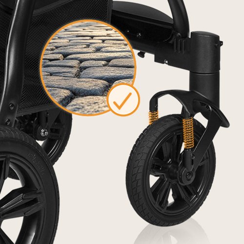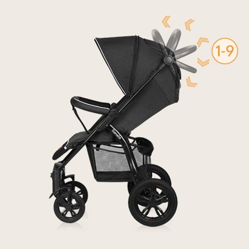 Také pro novorozence!: V kočárku lze bezpečně vozit děti ihned po narození! Sedadlo se dá složit naplocho (vznikne tak velký prostor dlouhý až 90 cm!) a speciální redukční vložka pro nejmenší děti zaručuje anatomicky správnou polohu, pohodlí a bezpečnost. Voděodolná boudička XXL s filtrem UPF50+: Zajišťuje dítěti dostatek místa a účinně chrání proti slunci, větru nebo dešti. Má přídavný, rozepínatelný panel, kukátko a reflexní prvky. UPF50+ je nejsilnější protisluneční filtr nasazovaný na tkaniny. Velká, bezúdržbová kola: Jsou vyrobena z polyuretanu, kombinují jízdní komfort s odolností. Je to materiál, který se prakticky neopotřebovává. Jsou protektorovaná a umožní vám pohodlnou procházku v každém terénu, nepropichují se a není třeba je foukat. Přední kola se otáčejí o 360°. Velmi dobré odpružení: Je to kočárek, se kterým nebudete cítit každý kámen na cestě – právě naopak. Nezávislé odpružení předních a zadních kol přispívá k tomu, že dítě (a jeho rodiče) pociťuje o mnoho méně otřesů a procházka je pohodlná. Jednoduché udržování čistoty: Opěrka nohou je potažena ekokůží v místě, kde se obvykle nacházejí boty dítěte, aby bylo možné jednoduše odstranit veškeré nečistoty. Potah kočárku a koš můžete prát v ruce. Prostorný koš: Koš pod kočárkem je prostorný a snadno přístupný, díky čemuž se kočárek osvědčí při nákupech. Reflexní prvky a příslušenství: Reflexní prvky na opěrce nohou, madlu a stříšce výrazně zlepšují viditelnost na silnici a zvyšují tak bezpečnost. V sadě s kočárkem dostanete také moskytiéru, držák na hrnek, redukční vložku a ochranný potah na nohy. Vhodný také pro vyšší osoby: Rukojeť kočárku má až 9 stupňů nastavení, což umožňuje rodičům přizpůsobit její polohu své výšce, aby procházka byla pohodlnější a zdravější pro páteř.