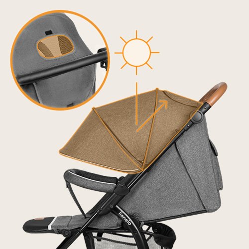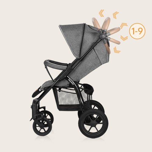 Výška rukojeti má až 9 stupňů nastavení, což usnadňuje manipulaci s kočárkem také vyšším osobám. Opěradlo a opěrku nohou lze nastavovat podle potřeb dítěte, které má v kočárku dostatek místa a je chráněno velkou voděodolnou stříškou. Pro snadné čištění je opěrka nohou potažena ekokůží a potah a koš kočárku můžete prát v ruce. Annet Tour je pevný, prostorný kočárek pro procházky ve městě i mimo něj.