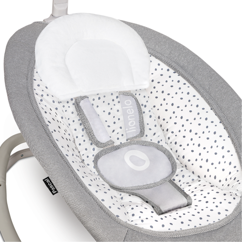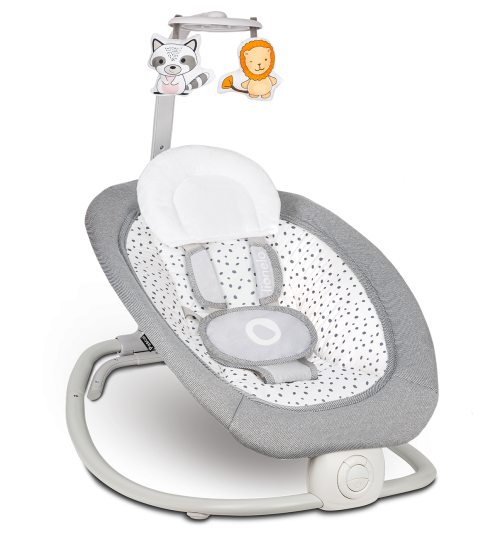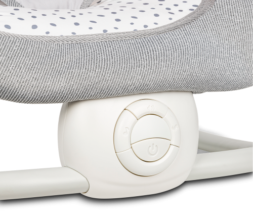 polohovatelné opěradlo ruční houpací systém interaktivní hračky - při stisknutí vydávají zvuky jemné vibrace přehrávání 12 melodií, ovládání hlasitosti pro provoz je třeba 2 x AA baterie (není součástí balení) režim úspory energie polštářek na opěrku hlavy snadné skládání do kompaktní velikosti montáž bez nářadí odnímatelné polstrování lze prát v pračce max na 30°C 5-bodové bezpečnostní pásy protiskluzové kryty - chrání podlahu proti poškrábání ideální i na cestování