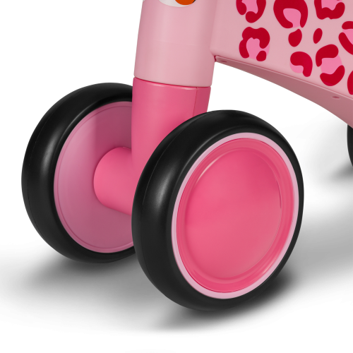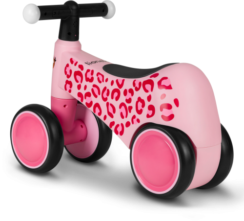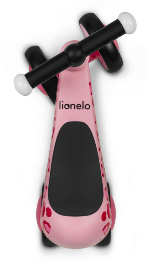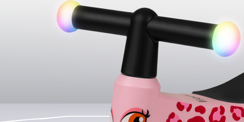 ergonomická konstrukce přizpůsobena tělu dítěte stabilní díky 4 kolečkům kolečka jsou vyrobena z EVA pěny, takže se osvědčí na každém povrchu protiskluzové rukojeti mají osvětlení, které se aktivuje pohybovým senzorem a poté se automaticky vypne pohodlné sedlo s dvojitou vrstvou výplně zámek řidítek omezí úhel otáčení a zabrání převrácení dítěte během jízdy sestavení během chvilky bez použití nářadí - stačí spojit 3 části dohromady splňuje evropskou bezpečnostní normu EN 71