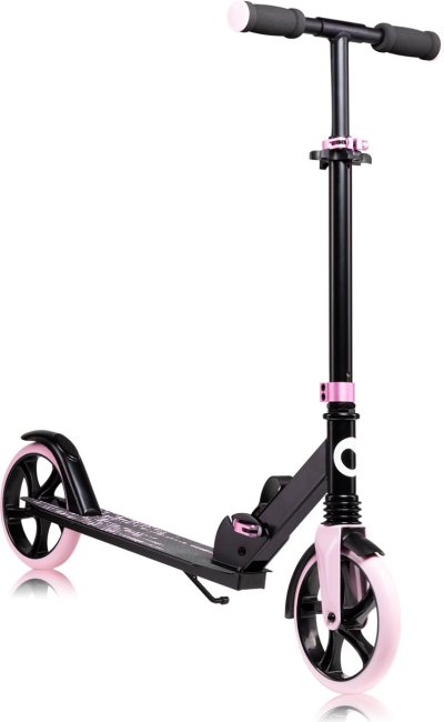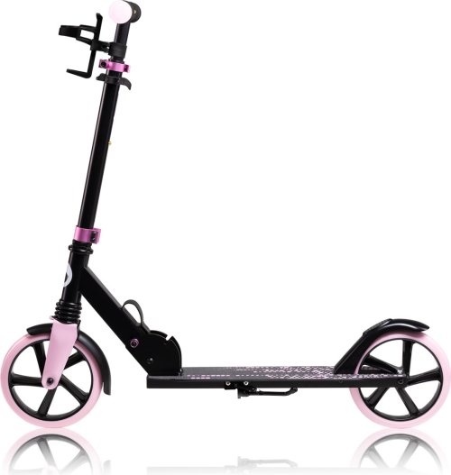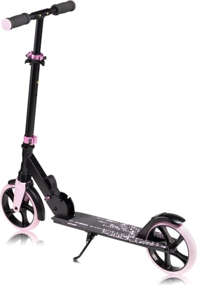 lehký hliníkový rám odolná kolečka o průměru 20 cm výškové nastavení řídítek do 3 úrovní protiskluzová podložka a brzda na zadním kole zajistí maximální bezpečnost pevný stojánek na levé straně držák na láhev lehká hmotnost umožňující snadnou přepravu koloběžky ložiska ABEC7 v kombinaci s polyuretanovými koly zvyšují rychlost jízdy