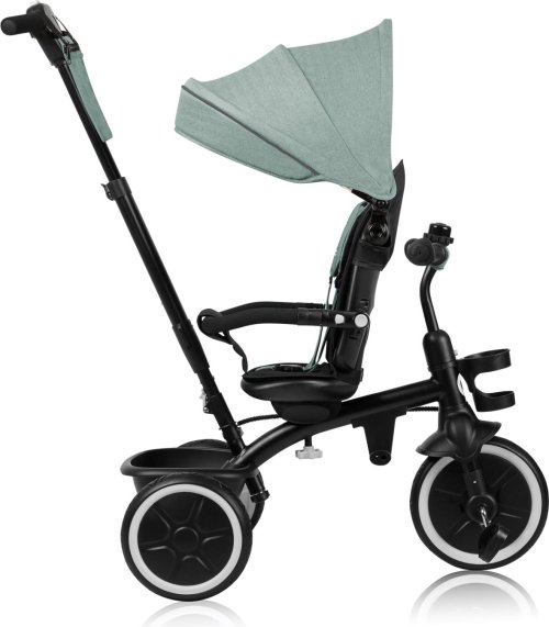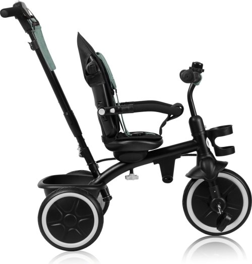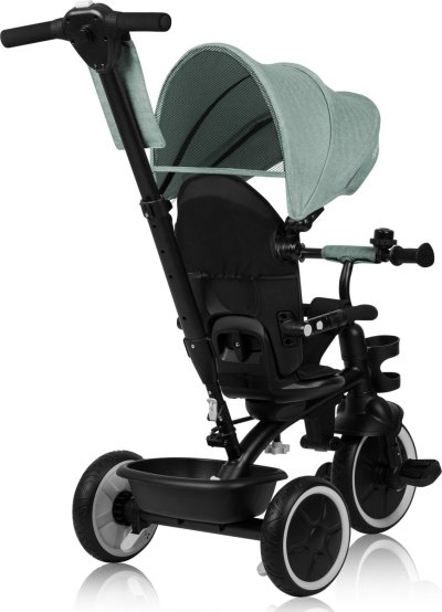 otáčecí sedátko o 360° s polstrováním na celé ploše 3bodové bezpečnostní pásy pro malé děti bezpečnostní zábrana kolem sedadla madlo se zvonkem součástí je prostorná taška na potřebné věci a držák na nápoj jednoduché skládání do kompaktní velikosti velká bezúdržbová PU kola brzda na zadních kolech výškově nastavitelná rukojeť pro rodiče: 82 - 100 cm velká stříška chrání dítě před sluncem, větrem a deštěm nastavení sedadla vpředu,vzadu reflexní lemování na stříšce polstrování na sedadle a opěradle velikost předního kola: 26 cm velikost zadních kol: 23 cm snadná a rychlá montáž tříkolku lze snadno složit bez použití nářadí