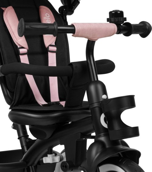 otáčecí sedátko o 360° s polstrováním na celé ploše 3bodové bezpečnostní pásy pro malé děti bezpečnostní zábrana kolem sedadla madlo se zvonkem součástí je prostorná taška na potřebné věci a držák na nápoj jednoduché skládání do kompaktní velikosti velká bezúdržbová PU kola brzda na zadních kolech výškově nastavitelná rukojeť pro rodiče: 82 - 100 cm velká stříška chrání dítě před sluncem, větrem a deštěm nastavení sedadla vpředu,vzadu reflexní lemování na stříšce polstrování na sedadle a opěradle velikost předního kola: 26 cm velikost zadních kol: 23 cm snadná a rychlá montáž tříkolku lze snadno složit bez použití nářadí