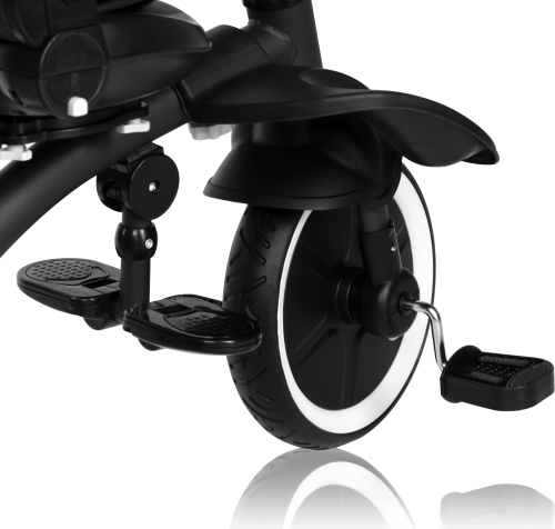 otáčecí sedátko s polstrováním na celé ploše 3bodové bezpečnostní pásy pro malé děti protiskluzová rukojeť se zvonkem součástí je prostorná taška na potřebné věci a držák na nápoje pod řídítky jednoduché skládání do kompaktní velikosti brzda na zadních kolech Výškově nastavitelná rukojeť pro rodiče: 80 - 100 cm Volně otáčející se kola Podnožka pro nejmenší děti Podnožka pro starší děti Nastavitelná opěrka zad Nastavení sedadla vpředu,vzadu Zadní kola s nezávislými brzdami Reflexní lemování na stříšce Extra polstrování na sedadle a opěradle velikost předního kola 26 cm velikost zadních kol 23 cm Nastavení opěradla ve 3 pozicích