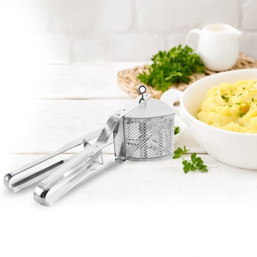 Kovový lis na lisování vařených brambor i jiné zeleniny.