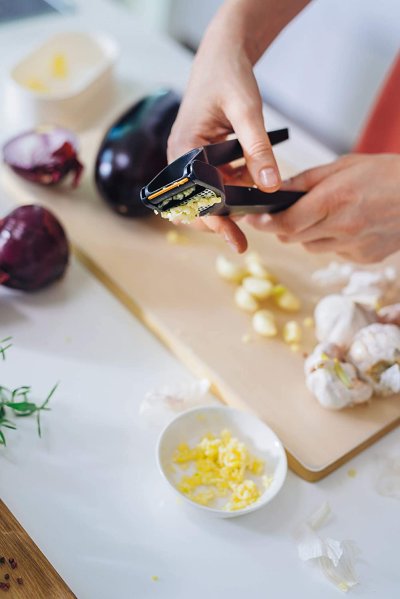 • Oranžová část je určena pro dočištění mřížky od česneku