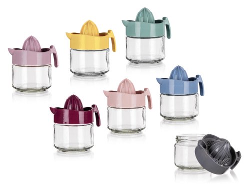 Lis na citrusy s miskou 0,3 l, sklo / PH mix barev. objem: 0,3 l průměr: 8,5 cm šířka: 12 cm výška: 11,5 cm materiál: sklo, plast mix barev: modrá, růžová, šedá, bordová Odšťavňovač na citrusy DARA, …