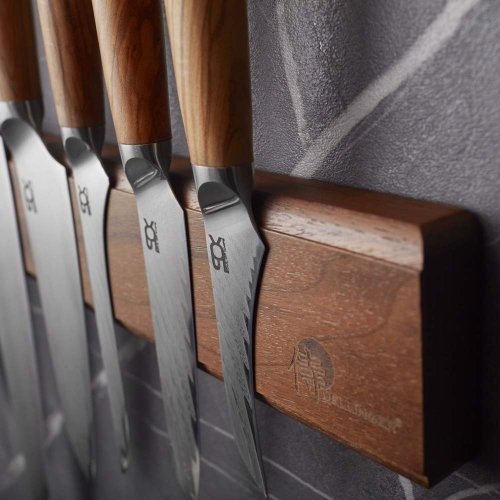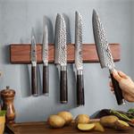Po celé délce lišty se nacházejí silné magnety, které udrží nože bezpečně na místě. Navíc zamezíte vzájemnému dotýkání čepelí, a tím i jejich ztupení. Připevníte na ni až 6 nožů najednou. Provedení z kvalitního dřeva, ošetřeného směsí olejů a vosku, zaručuje její dlouhou životnost a odolnost.