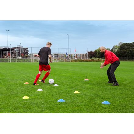 Sada vytyčovacích met Lite Speed pro vaše tréninky. Vytyčovací mety jsou vyrobené z pružného PE materiálu. Díky pestrým barvám jsou dobře viditelné. Mety slouží jako trenérská pomůcka při organizaci tréninků pro vytyčení trasy či ploch. Použít je lze jak při venkovních, tak vnitřních aktivitách. Balení obsahuje praktický stojánek se 40ti kusy met. Výška jedné mety je 5 cm a průměr 18,5 cm.