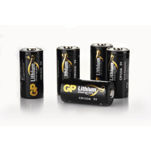 Baterie řady GP Lithium Chemické složení: lithiové Typ: CR123A (CR123AP, CR17345) Napětí: 3 V Kapacita: 1 500 mAh Rozměr: 17,0 × 34,5 mm Hmotnost: 16 g Provozní teplota: -40 °C až +60 °C Prodejní obal: …