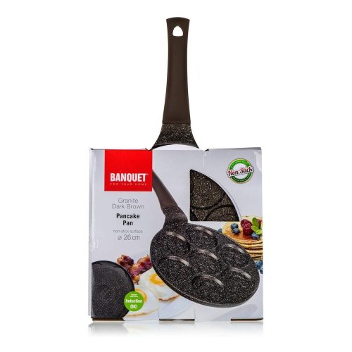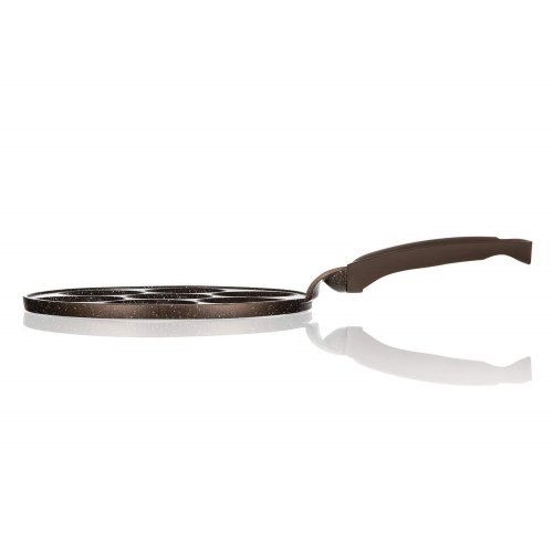 Pánev na 7 lívanců s nepřilnavým povrchem GRANITE BROWN Smile. Litá hliníková pánev na lívance GRANITE BROWN určená na lívance. Pánev je opatřena vnitřním 2vrstvý nepřilnavým povrchem, v hnědém mramoru, a indukčním dnem s 2vrstvým žáruvzdorným nástřikem.