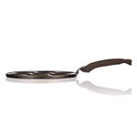 průměr: 26 cm hloubka: 3,5 cm pánev má 7 forem na lívance průměr 1 formy: 8 cm materiál: hliník tloušťka stěny: 2 mm tloušťka dna: 4 mm barva: hnědá délka rukojeti: 26 cm materiál rukojeti: bakelit