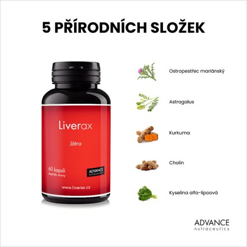 Liverax je přírodní doplněk, který obsahuje komplex přírodních aktivních látek. Základem je extrakt z ostropestřce mariánského pro normální činnost jater. Játra jsou vystavena negativním vlivům zejména při nadměrné konzumaci alkoholu a při dlouhodobém užívání některých léků.