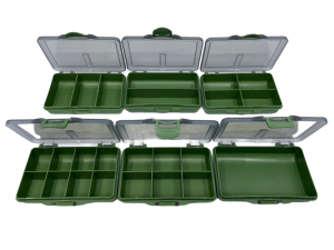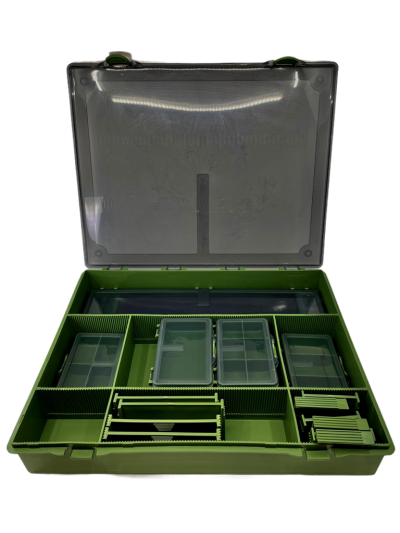 LK Baits CARP BOX MULTI – Velmi universální a praktický penál na celou rybářskou bižuterii, který obsahuje 6 menších různých krabiček a také penál na návazce. Rozměr 36x29x6cm (Olivová barva).