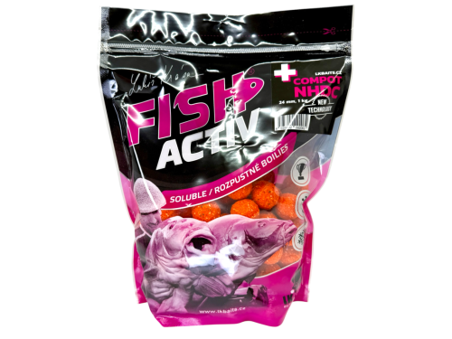 FISH ACTIV – absolutní novinka ve výrobě návnad a nástrah. Díky naší nové technologické lince konečně dokážeme vyrobit rozpustnou kulatou „extrudu – boilies“, která obsahuje pouze ty nejúčinnější rozpustné proteiny, extrakty a jiné ingredience, které se klasickým způsobem výroby boilies znehodnocují! Po vhození do vody začíná FISH ACTIV okamžitě pracovat, kdy vytváří okolo nástrahy neodolatelný mrak a pachovou stopu z přírodních extraktů, které nenechají žádnou rybu v klidu. Fish Activ je vyvinutý k co nejrychlejšímu chytání ryb, závodům a pro chytání ve studené vodě. Fish Activ se vyrábí v našich oblíbených příchutích a tak ho můžete kombinovat s klasickým boilies, peletami i partiklem. Oblíbený je i při dlouhodobém chytání. Ničím jiným si krmné místo nerozjedete rychleji než s FISH ACTIV! Garantujeme Vám, že: „Nezůstane kámen na kameni“!