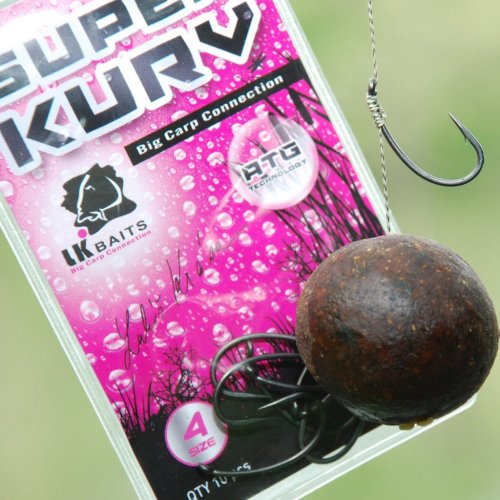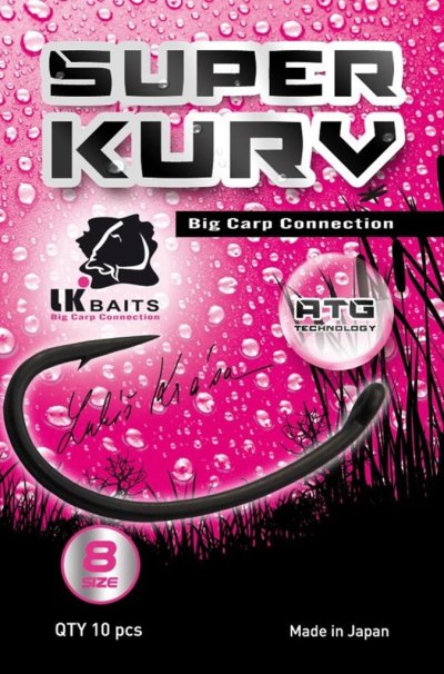 Nejpoužívanější tvar háčku současnosti v novém ATG provedení. Super Kurv vyroben přímo v Japonsku za využití nejnovější technologie a použití nejkvalitnější japonské oceli a nejvyšší lidské dovednosti. Háčky prochází chráněným procesem temperace, která jim dodává maximální pevnost a hlavně dlouhodobou ostrost. Nová matná povrchová úprava zase zaručuje dlouhodobou ochranu proti korozi a nesnižuje pevnost, jako je tomu u klasických teflonových háčků. Háček, na který je spoleh za všech okolností, které Vás mohou u vody potkat.