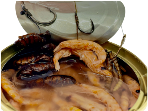 Vysoce kvalitní celé krevetky naložené ve vlastní šťávě. Díky speciálnímu výrobnímu procesu se ve velké míře zachovává vůně a svěžest krevet. Díky sterilizaci je krmivo zdravotně nezávadné. Čerstvé krevety jsou velmi atraktivní nástraha/návnada a je jen na Vás, jestli je použijete do PVA punčoch, nebo stick mixů, partiklů nebo jako samostatnou nástrahu. Pokud smícháte obsah konzervy 1:1 s tekutou potravou All Amino Nutric, vznikne Vám velmi atraktivní dip nebo booster.