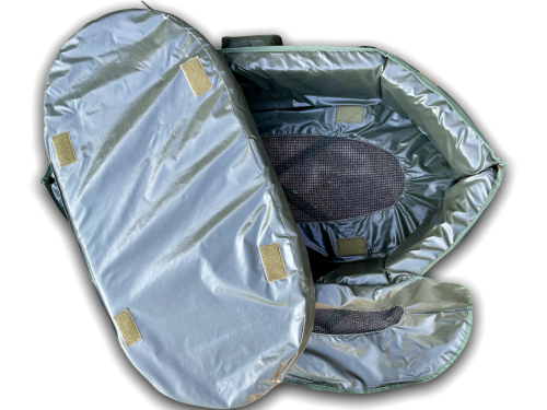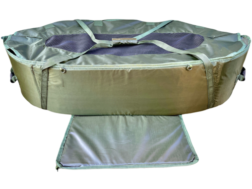 Velmi bezpečná podložka z kvalitního šetrného materiálu bazenkovitého tvaru. Vnitřní část rybářské podložky je extra polstrovaná, odstranitelná a snadno omyvatelná. Boční části podložky jsou také polstrované, na zip a chráněné lemem na každém konci pro snadné puštění ryby. Rybu můžete zabezpečit zavřením podložky na suchý zip. Vršek podložky je vybaven síťovinou, aby jste mohli rybu polévat i ve chvíli, kdy je podložka uzavřená a také aby ryba měla dostatek vzduchu. Na obou stranách pevné úchyty pro snadnou manipulaci. I když je podložka velká, může být úhledně složena pro snadnější přepravu. Podložka je opatřena kapsou na metr, váhu či desinfekci a také podkoleníkem! Délka: 100 cm, šířka:45cm, váha 2,7 kg.