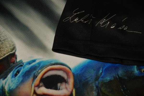 Lukas Krasa T – Shirt Moderní triko s novou tiskovou technologií, kde hlavním motivem je populární fotka Lukáše Krásy na celé zadní části, decentním podpisem na rukávu a hlavou kapra na přední levé části.