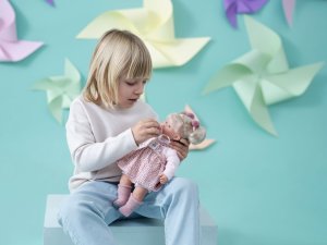 Mluvící a plačící panenka (po vyjmutí pojistky ihned funkční) s měkkým látkovým tělem a s vlásky po celé hlavě. Hlava a končetiny jsou vyrobené z kvalitního měkčeného vinylu. Po vytažení dudlíku z úst začne panenka říkat „mama“, „papa“ a vydávat reálný zvuk plačícího dítěte, který lze utišit opět magnetickým dudlíkem. Velikost panenky 33 cm. Ručně vyrobeno ve Španělsku, baleno v dárkové krabici. Doporučený věk od 3 let. K panence je možné dokoupit další originální oblečení z nabídky Llorens pro panenky velikosti 33 cm. Součástí balení je 3 x knoflíková baterie LR44 s návodem na její výměnu. Baterie jsou spotřební zboží a proto jejich vybití není důvodem k reklamaci panenky.