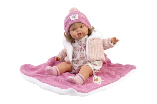 Mluvící a plačící panenka (po vyjmutí pojistky ihned funkční) s měkkým látkovým tělem a s vlásky po celé hlavě. Hlava a končetiny jsou vyrobené z kvalitního měkčeného vinylu. Po vytažení dudlíku z úst začne panenka říkat „mama“, „papa“ a vydávat reálný zvuk plačícího dítěte, který lze utišit opět magnetickým dudlíkem. Velikost panenky 38 cm. Ručně vyrobeno ve Španělsku, baleno v dárkové krabici. Doporučený věk od 3 let. K panence je možné dokoupit další originální oblečení z nabídky Llorens pro panenky velikosti 38 cm. Součástí balení je 3 x knoflíková baterie LR44 s návodem na její výměnu. Baterie jsou spotřební zboží a proto jejich vybití není důvodem k reklamaci panenky.