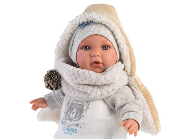 Mluvící a plačící panenka (po vyjmutí pojistky ihned funkční) s měkkým látkovým tělem. Hlava a končetiny jsou vyrobené z kvalitního měkčeného vinylu. Po vytažení dudlíku z úst začne panenka říkat „mama“, „papa“ a vydávat reálný zvuk plačícího dítěte, který lze utišit opět magnetickým dudlíkem. Velikost panenky 42 cm. Ručně vyrobeno ve Španělsku, baleno v dárkové krabici. Doporučený věk od 3 let. K panence je možné dokoupit další originální oblečení z nabídky Llorens pro panenky velikosti 42 cm. Součástí balení je 3 x knoflíková baterie LR44 s návodem na její výměnu. Baterie jsou spotřební zboží a proto jejich vybití není důvodem k reklamaci panenky.