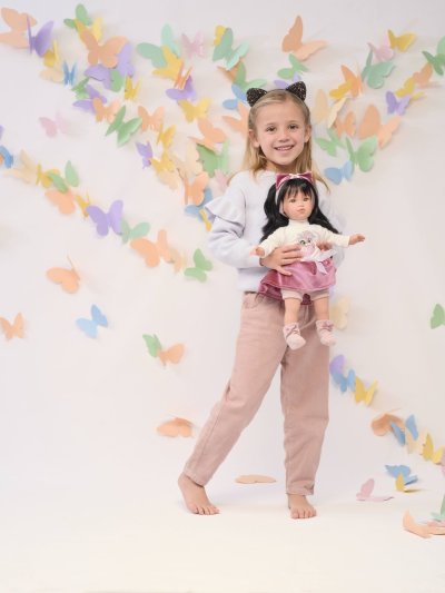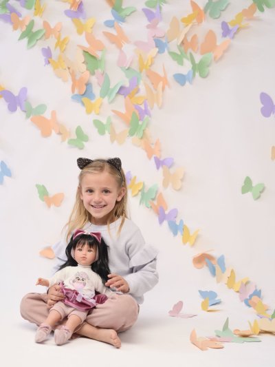 Panenka bez zvuku s měkkým látkovým tělem a s vlásky po celé hlavě, podobající se malé slečně. Velikost 40 cm. Ručně vyrobeno ve Španělsku, baleno v dárkové krabici. Doporučený věk od 3 let. K panence je možné dokoupit další originální oblečení z nabídky Llorens pro panenky velikosti 40 cm.