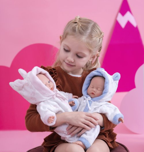 Spící miminko bez zvuku s měkkým látkovým tělem. Hlava a končetiny jsou vyrobené z kvalitního měkčeného vinylu. Dudlík v balení slouží pouze jako doplněk. Velikost 32 cm. Ručně vyrobeno ve Španělsku, baleno v dárkové krabici. Doporučený věk od 3 let. K miminku je možné dokoupit další originální oblečení z nabídky Llorens pro miminka NEW BORN velikosti 35-36 cm.