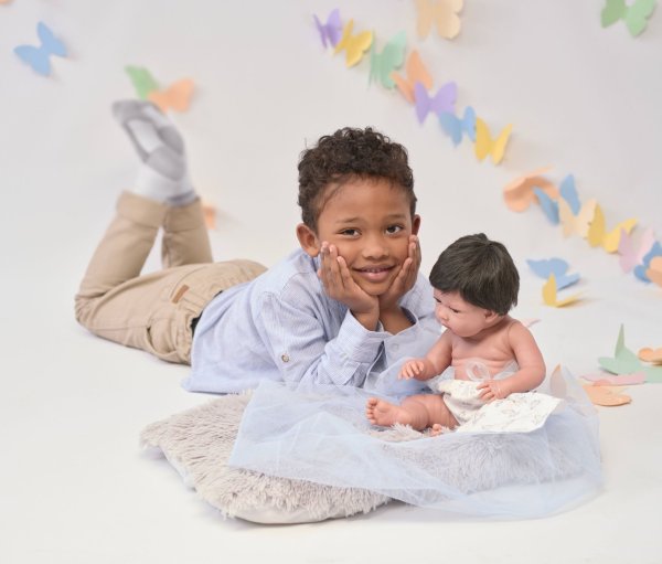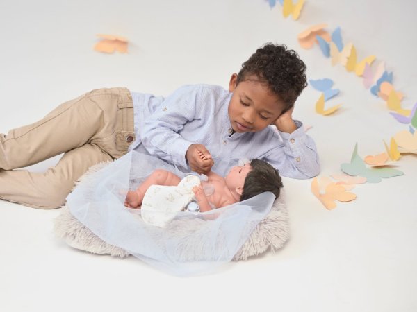 Miminko bez zvuku s vinylovým tělem, na kterém je zachycen doslova každý detail dětského tělíčka včetně roztomilých miminkovských faldíků a pohlaví. Ruce a nohy jsou k tělu přichycené kloubem. Miminko je polohovací a může i sedět. Dudlík v balení slouží pouze jako doplněk. Velikost 40 cm. Ručně vyrobeno ve Španělsku, baleno v dárkové krabici. Doporučený věk od 3 let. K miminku je možné dokoupit další originální oblečení z nabídky Llorens pro miminka NEW BORN velikosti 40-42 cm.