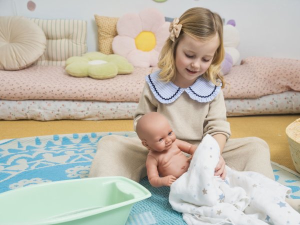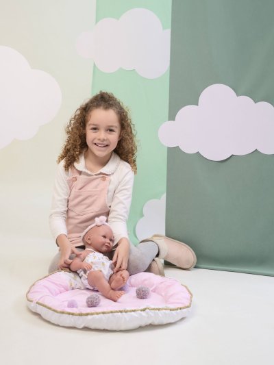 Miminko bez zvuku s vinylovým tělem s možností koupání, na kterém je zachycen doslova každý detail dětského tělíčka včetně roztomilých miminkovských faldíků a pohlaví. Miminko lze koupat, ale je potřeba dát pozor, aby se nenamočily řasy. Odlepené řasy nejsou pak důvodem k reklamaci. Ruce a nohy jsou k tělu přichycené kloubem. Miminko je polohovací a může i sedět. Velikost 40 cm. Ručně vyrobeno ve Španělsku, baleno v dárkové krabici. Doporučený věk od 3 let. K miminku je možné dokoupit další originální oblečení z nabídky Llorens pro miminka NEW BORN velikosti 40-42 cm.