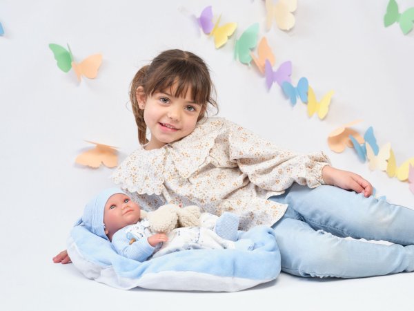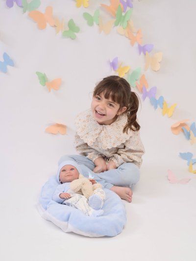 Miminko bez zvuku s vinylovým tělem s možností koupání, na kterém je zachycen doslova každý detail dětského tělíčka včetně roztomilých miminkovských faldíků a pohlaví. Miminko lze koupat, ale je potřeba dát pozor, aby se nenamočily řasy. Odlepené řasy nejsou pak důvodem k reklamaci. Ruce a nohy jsou k tělu přichycené kloubem. Miminko je polohovací a může i sedět. Velikost 40 cm. Ručně vyrobeno ve Španělsku, baleno v dárkové krabici. Doporučený věk od 3 let. K miminku je možné dokoupit další originální oblečení z nabídky Llorens pro miminka NEW BORN velikosti 40-42 cm.