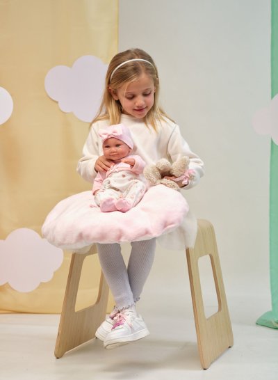 Miminko bez zvuku s vinylovým tělem s možností koupání, na kterém je zachycen doslova každý detail dětského tělíčka včetně roztomilých miminkovských faldíků a pohlaví. Miminko lze koupat, ale je potřeba dát pozor, aby se nenamočily řasy. Odlepené řasy nejsou pak důvodem k reklamaci. Ruce a nohy jsou k tělu přichycené kloubem. Miminko je polohovací a může i sedět. Velikost 40 cm. Ručně vyrobeno ve Španělsku, baleno v dárkové krabici. Doporučený věk od 3 let. K miminku je možné dokoupit další originální oblečení z nabídky Llorens pro miminka NEW BORN velikosti 40-42 cm.