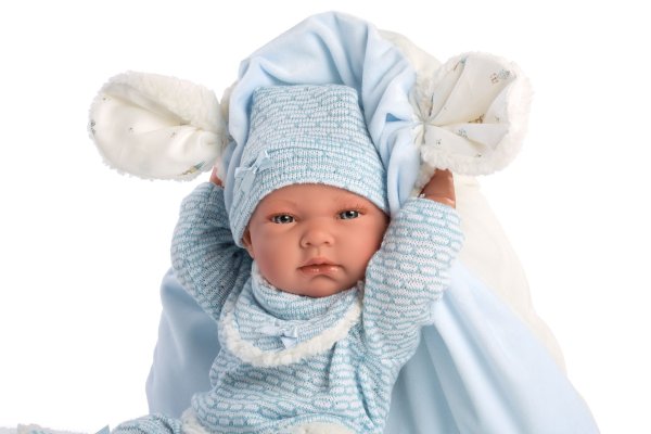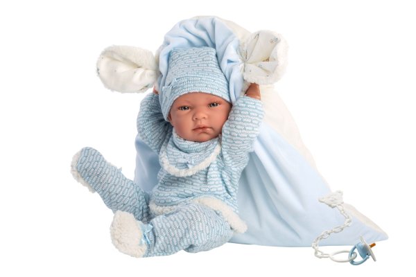 Miminko bez zvuku s vinylovým tělem s možností koupání, na kterém je zachycen doslova každý detail dětského tělíčka včetně roztomilých miminkovských faldíků a pohlaví. Miminko lze koupat, ale je potřeba dát pozor, aby se nenamočily řasy. Odlepené řasy nejsou pak důvodem k reklamaci. Ruce a nohy jsou k tělu přichycené kloubem. Miminko je polohovací a může i sedět. Dudlík v balení slouží pouze jako doplněk. Velikost 40 cm. Ručně vyrobeno ve Španělsku, baleno v dárkové krabici. Doporučený věk od 3 let. K miminku je možné dokoupit další originální oblečení z nabídky Llorens pro miminka NEW BORN velikosti 40-42 cm.