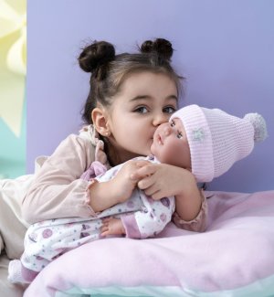 Mrkací a mluvící miminko s měkkým látkovým tělem, které po zatlačení na hrudník začne říkat „mama“, „papa“ a vydávat reálný zvuk plačícího miminka. Ruce a nohy jsou k tělu přichyceny kloubem. Miminko je polohovací a může i sedět. Dudlík v balení slouží pouze jako doplněk. Velikost 42 cm. Ručně vyrobeno ve Španělsku, baleno v dárkové krabici. Doporučený věk od 3 let. K miminku je možné dokoupit další originální oblečení z nabídky Llorens pro miminka NEW BORN velikosti 40-42 cm nebo 43-45 cm. Součástí balení je 3 x knoflíková baterie LR44 s návodem na její výměnu. Baterie jsou spotřební zboží a proto jejich vybití není důvodem k reklamaci panenky.