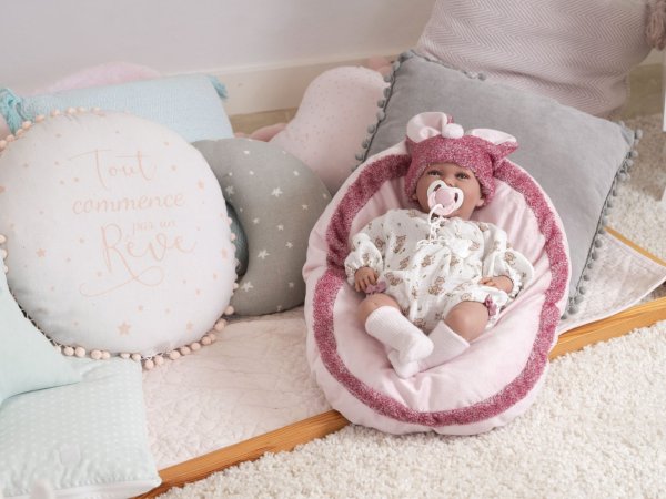 Mluvící miminko s měkkým látkovým tělem, které se po zatlačení na hrudník začne smát a říkat „mama“, „papa“. Ruce a nohy jsou k tělu přichyceny kloubem. Miminko je polohovací a může i sedět. Dudlík v balení slouží pouze jako doplněk. Velikost 42 cm. Ručně vyrobeno ve Španělsku, baleno v dárkové krabici. Doporučený věk od 3 let. K miminku je možné dokoupit další originální oblečení z nabídky Llorens pro miminka NEW BORN velikosti 40-42 cm nebo 43-45 cm. Součástí balení je 3 x knoflíková baterie LR44 s návodem na její výměnu. Baterie jsou spotřební zboží a proto jejich vybití není důvodem k reklamaci panenky.
