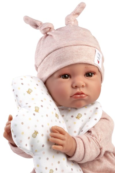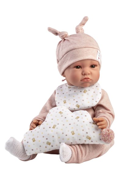 Mluvící miminko s měkkým látkovým tělem, které po zatlačení na hrudník začne říkat „mama“, „papa“ a vydávat reálný zvuk plačícího miminka. Ruce a nohy jsou k tělu přichyceny kloubem. Miminko je polohovací a může i sedět. Velikost 45 cm. Ručně vyrobeno ve Španělsku, baleno v dárkové krabici. Doporučený věk od 3 let. K miminku je možné dokoupit další originální oblečení z nabídky Llorens pro miminka NEW BORN velikosti 43-45 cm. Součástí balení je 3 x knoflíková baterie LR44 s návodem na její výměnu. Baterie jsou spotřební zboží a proto jejich vybití není důvodem k reklamaci panenky.