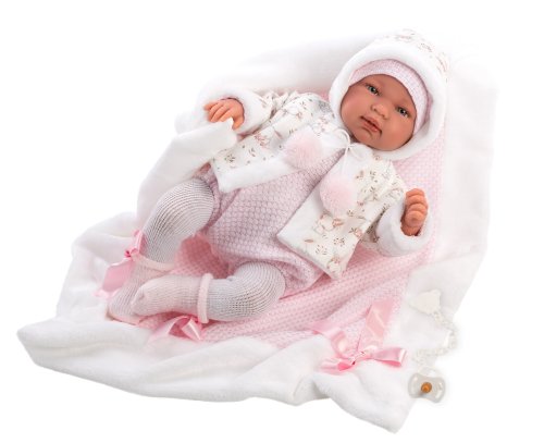 Mluvící miminko s měkkým látkovým tělem, které po zatlačení na hrudník začne říkat „mama“, „papa“ a vydávat reálný zvuk plačícího miminka. Ruce a nohy jsou k tělu přichyceny kloubem. Miminko je polohovací a může i sedět. Tento model je bez oblečení a proto doporučujeme k panence dokoupit originální oblečení z nabídky Llorens pro miminka NEW BORN velikosti 43-45 cm.Dudlík v balení slouží pouze jako doplněk. Velikost 44 cm. Ručně vyrobeno ve Španělsku, baleno v igelitovém obalu. Doporučený věk od 3 let. Součástí balení je 3 x knoflíková baterie LR44 s návodem na její výměnu. Baterie jsou spotřební zboží a proto jejich vybití není důvodem k reklamaci panenky.