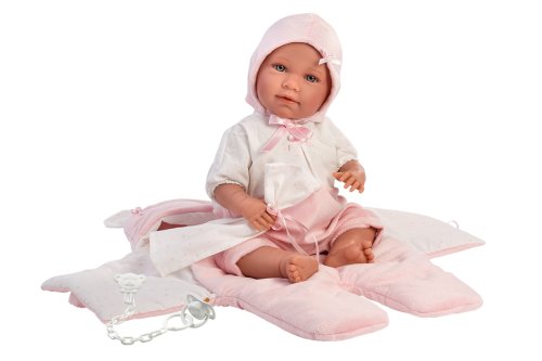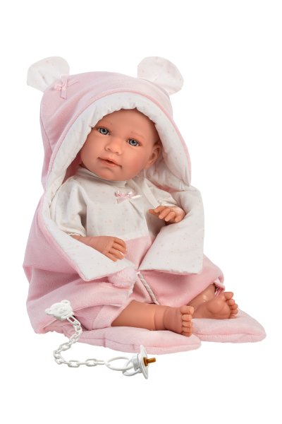 2dílný obleček se sametovou rychlozavinovačkou do autosedačky a ozdobným kapesníčkem pro panenku miminko NEW BORN Llorens velikosti 40-42 cm. Vyrobeno ve Španělsku, baleno v igelitovém obalu s plastovým nebo kartonovým ramínkem. Doporučený věk od 3 let.