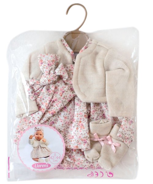 5 kusů oblečení pro panenku miminko NEW BORN Llorens velikosti 43–44 cm. Vyrobeno ručně ve Španělsku, baleno v igelitovém obalu s plastovým ramínkem. Doporučený věk od 3 let.