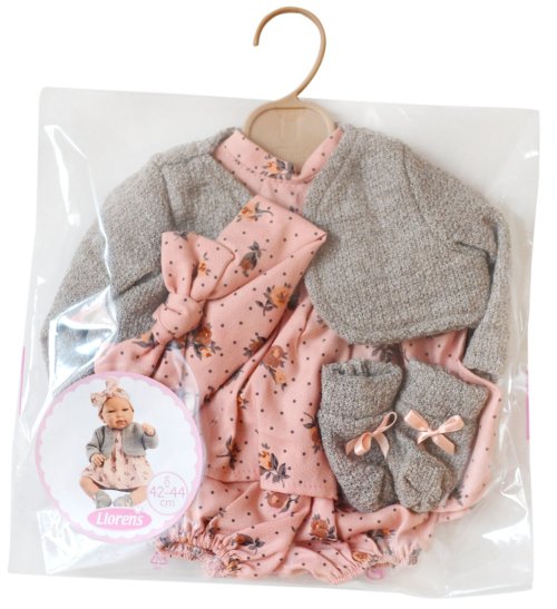 5 kusů oblečení pro panenku miminko NEW BORN Llorens velikosti 43–44 cm. Vyrobeno ručně ve Španělsku, baleno v igelitovém obalu s plastovým ramínkem. Doporučený věk od 3 let.