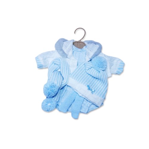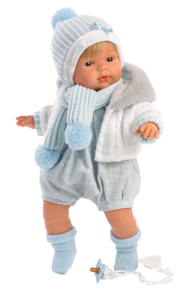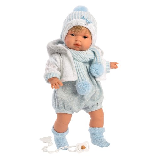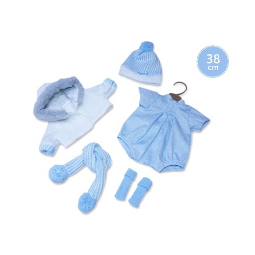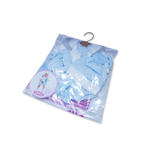 5dílný obleček pro panenku Llorens velikosti 38 cm. Vyrobeno ve Španělsku, baleno v igelitovém obalu s plastovým nebo kartonovým ramínkem. Doporučený věk od 3 let.