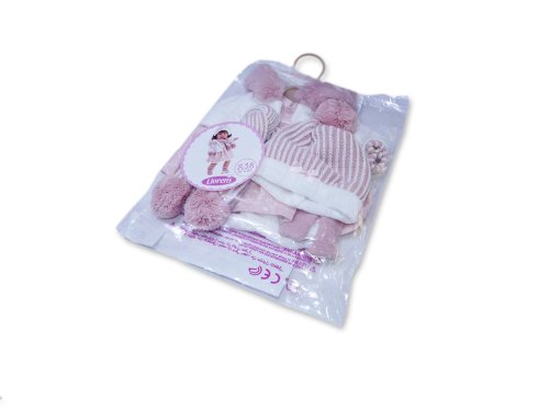 6dílný obleček pro panenku Llorens velikosti 38 cm. Vyrobeno ve Španělsku, baleno v igelitovém obalu s plastovým nebo kartonovým ramínkem. Doporučený věk od 3 let.