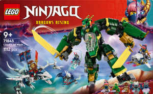 Děti od 9 let si se stavebnicí Lloydův tryskáčový robot připomenou akční scény z 3. řady televizního seriálu NINJAGO® Dračí povstání Děti můžou přestavovat části těla pohyblivé figurky robota s kokpitem a 2 velkými meči a rychle vytvořit tryskáč s kokpitem, křídly a tryskovými motory Součástí dobrodružné stavebnice je také létající motorka, na které může jezdit Sora, a přízračný drak, se kterým si děti můžou hrát na ještěvětší bojové scény Tato akční stavebnice obsahuje nindži Soru a Lloyda, trojici padouchů Mistryni rozkladu Kur, Tyra a Přízračného dračího bojovníka pro velkolepé bitvy