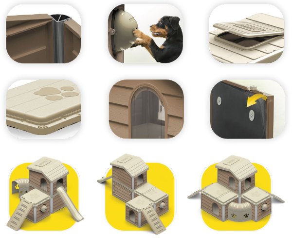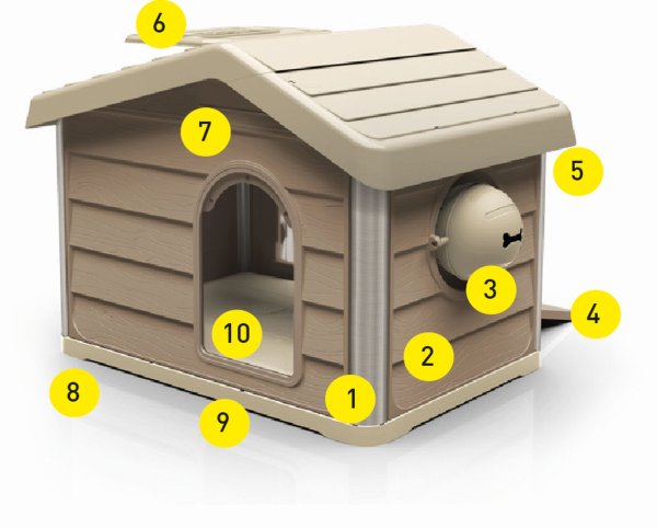 Praktický, odolný, krásný a pohodlný domeček pro psy a kočky je perfektní místo, kde může váš mazlíček spát, odpočívat nebo hrát si. Domeček je nejenom výborným útočištěm před povětrnostními podmínkami, ale díky sklopné větrací zadní stěně poslouží v horkých letních dnech i jako útočiště před sluncem.
