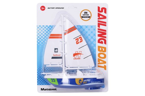 Loď závodní. Rozměry 21x6,5x25 cm. 2xAA baterie nejsou součástí. Přepínač ON/OFF v zadní části lodi nad motorem. 2 barevné varianty: modrá, bílá