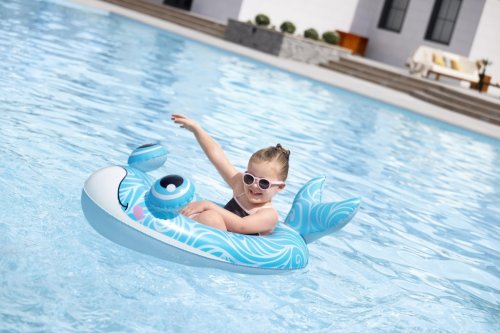 Rozměry jednotlivých modelů jsou přizpůsobeny tak, aby pohodlně pojaly malé děti. Velryba měří 105×65 cm, drak 111×65 cm a ponorka 108×65 cm. Díky těmto rozměrům a nosnosti až 45 kg jsou vhodné pro děti od tří let věku, což je také doporučený věk pro bezpečné použití. Každý model je doplněn o charakteristické detaily, které ještě více přispívají k atraktivitě – velryba je modrá s bílými spirálovitými vzory a výraznými nafukovacími očima, drak je zpracován v jasně zelené barvě s velkýma očima a žlutými detaily, zatímco ponorka je v kombinaci žluté, oranžové a tyrkysové s výrazným bílým proplétacím kolem.